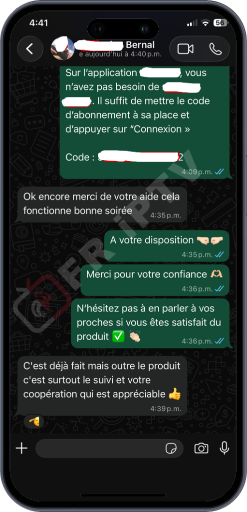 « Le support client est exceptionnel. J’ai eu un problème d’installation sur ma Smart TV LG, ils m’ont guidé en temps réel sur WhatsApp. Moins de 10 minutes et tout fonctionnait. »